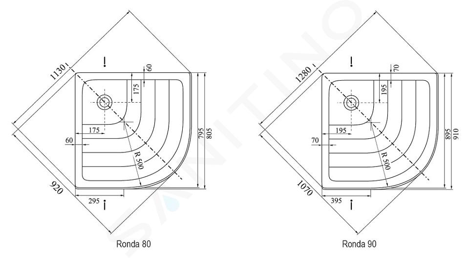 Receveur de douche quart de rond Ronda-80 LA dimensions : 805 x 805 mm... Afficher la description complète