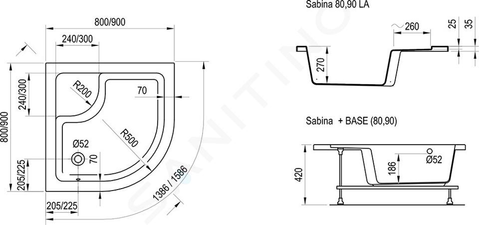 Receveur de douche avec caractéristiques de baignoire. Très utile dans les petites salles de bains. Il permet de se doucher confortablement, mais aussi de baigner les enfants ou de faire tremper le linge. Le receveur Sabina convient aux cabines de douche avec extensions inférieures SKCP4 ou BLCP4 Sabina. Nous recommandons d'utiliser le siphon RAVAK Sabina. Lors de l'installation du receveur, nous recommandons l'utilisation d'un kit d'installation universel.