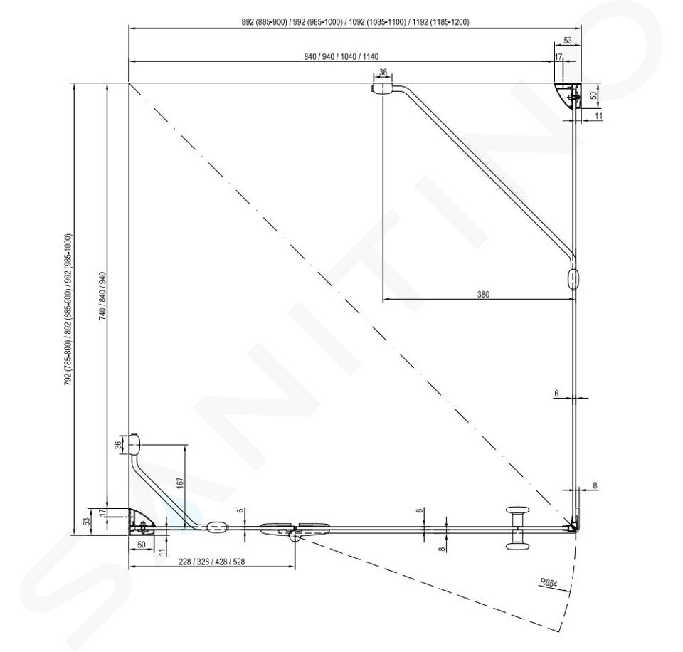 Paroi de douche fixe SMPS-80 R