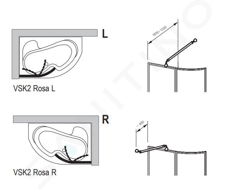 Pare-baignoire en deux parties VSK2 Rosa 160 P