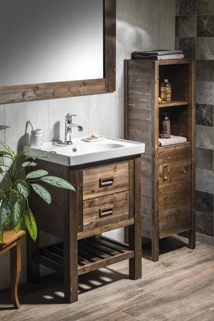 Le bois convient partout - pourquoi pas dans votre salle de bains ? Les meubles lavabos de la marque Sapho ont des formes agréablement conservatrices qui ajoutent de l'air et de la grâce à la salle de bains. Les tiroirs et le banc inférieur sont des éléments pratiques qui offrent un grand espace de rangement. Le meuble est disponible en finition épicéa teinté ou blanc antique. Il est possible de commander un lavabo assorti à la taille et au design du lavabo sur pied SANITINO. Les armoires à lavabos sont encore plus esthétiques si elles sont complétées par un tabouret ou un miroir dans un cadre, également de la série Sapho Brand.