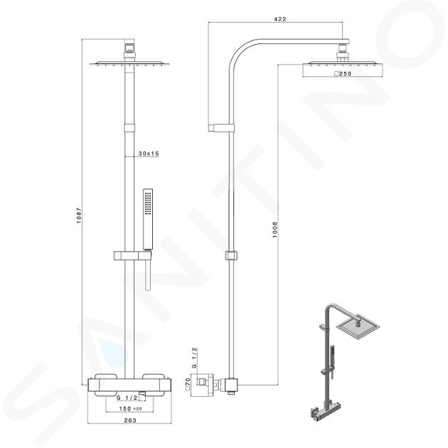 Set de douche avec douche de tête, pomme de douche, flexible et mitigeur thermostatique
