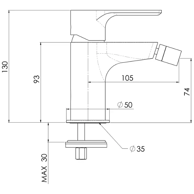 Mitigeur de bidet sans garniture de vidage