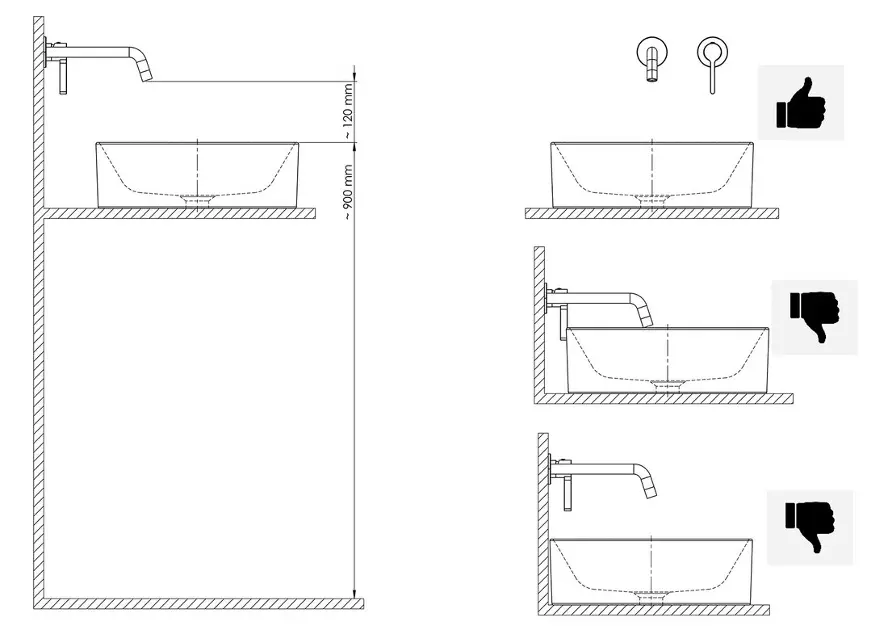Réfléchissez bien aux positions de votre robinet et de votre lavabo avant de commencer l’installation. Nous recommandons d’installer le robinet pour que le bec soit au centre du lavabo.