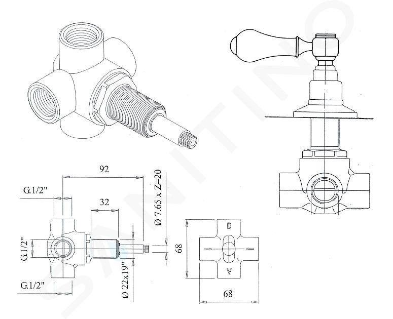 Vanne pour installation encastrée pour 2 appareils, avec interrupteur... Afficher la description complète