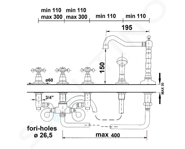 Mitigeur pour montage sur bord de baignoire avec installation 5 trous... Afficher la description complète