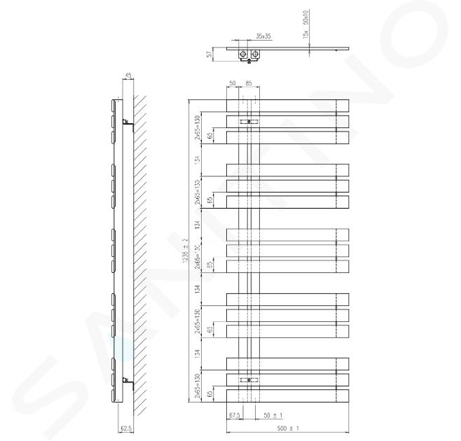 Radiateur sèche-serviettes 500 x 1236 mm