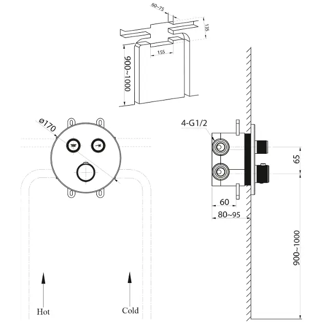 Thermostat encastré, avec corps d'encastrement finition : chrome... Afficher la description complète