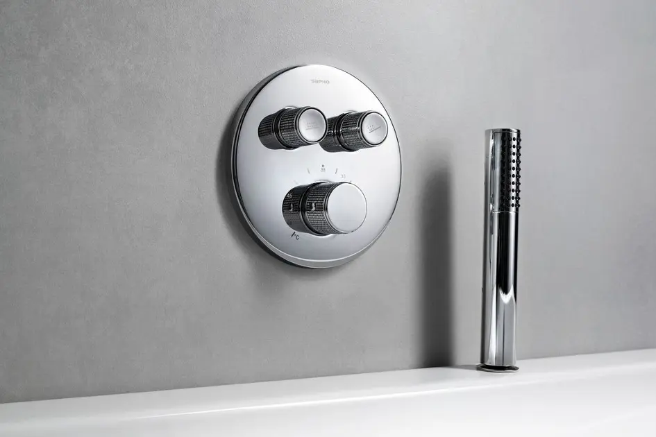 Le design intemporel des mitigeurs thermostatiques encastrés Sapho Smart Select rehausse la valeur esthétique de toute salle de bains. Il se décline en plusieurs finitions : le chrome traditionnel apporte de la clarté, le noir mat une touche de mystère et d’assurance. La finition or mat, quant à elle, confère un luxe discret et agréable. Ces mitigeurs encastrés séduisent autant par leur fonctionnalité et leur sécurité que par la qualité des matériaux utilisés. Ils sont conçus pour deux points de sortie (douche de tête et douchette à main). Les rosaces de finition sont disponibles en version ronde ou carrée. Le corps d’encastrement est inclus dans le set.