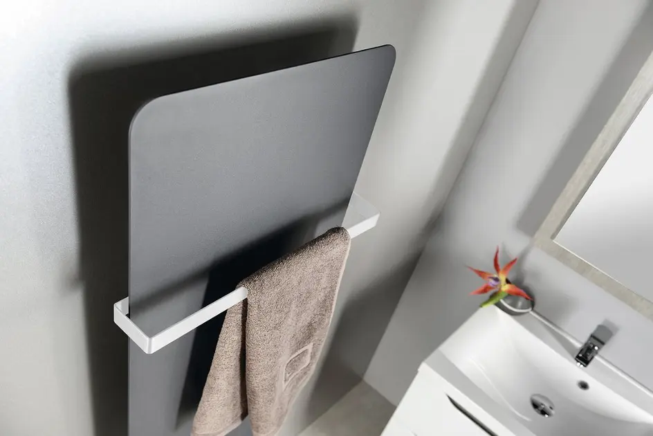 Avec Sapho Tabella, vous découvrirez qu’un corps de chauffe peut aussi remplir une fonction décorative dans la salle de bains. Ce radiateur original, conçu pour un raccordement au chauffage central, est fabriqué en acier. Il séduit par son profil ultra fin et sa surface lisse. Sa puissance de 694 ou 734 W suffit non seulement à sécher les serviettes, mais surtout à chauffer efficacement toute la salle de bains. SANITINO propose ce modèle en finition blanche ou anthracite.