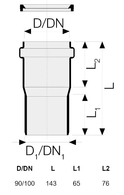 Réduction PVC dimensions : DN 90/100 longueur(L) = 143 mm pour le... Afficher la description complète